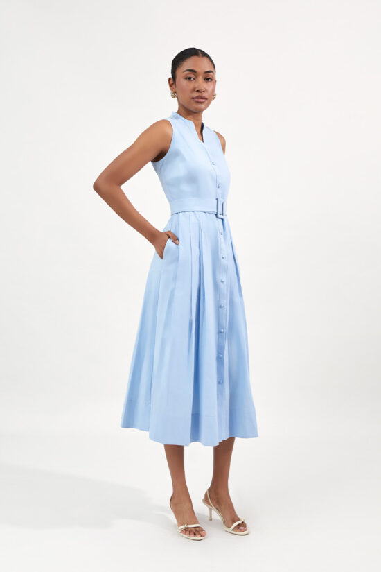 Pantalón recto a la cintura, pretina anatomica, con pinzas y cuenta con bolsillos al costado.